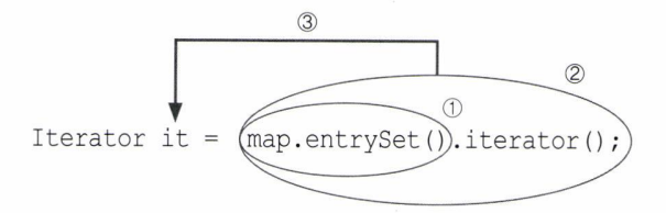 Iterator it = map.entrySet().iterator(); 는 아래의 두 문장을 하나로 합친 것이라고 이해하면 됩니다.