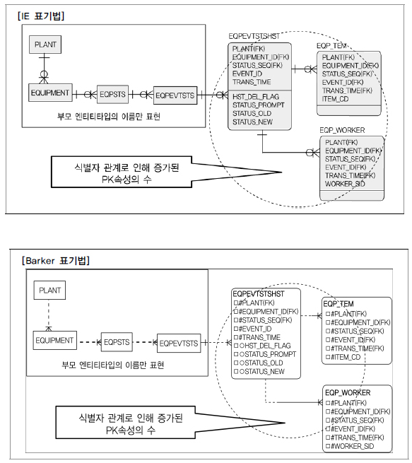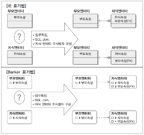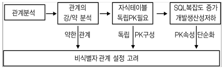 여기서 가장 중요한 요인은 자식 엔터티의 독립된 주식별자 구성이 필요한지를 분석하는 것이다. 독립적으로 주식별자를 구성한다는 것은 업무적 필요성과 성능상 필요 여부를 모두 포함하는 의미로 이해하면 된다.