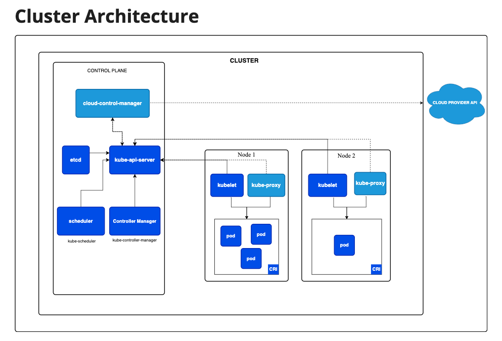쿠버네티스는 분산된 애플리케이션의 관리와 확장을 지원하는 모듈형 아키텍처를 가지고 있습니다. 이를 이해하기 위해 주요 구성 요소들을 살펴보겠습니다.