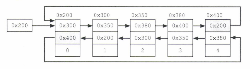 더블 링크드 리스트의 접근성을 보다 향상시킨 것이 ‘더블 써큘러 링크드 리스트’인데, 단순히 더블 링크드 리스트의 첫 번째 요소와 마지막 요소를 서로 연결시킨 것이다. 이렇게 하면, 마지막 요소의 다음요소가 첫번째 요소가 되고, 첫번째 요소의 이전 요소가 마지막 요소가 된다. 마치 TV의 마지막 채널에서 채널을 증가시키면 첫번째 채널로 이동하고 첫번째 채널에서 채널을 감소시키면 마지막 채널로 이동하는 것과 같다.