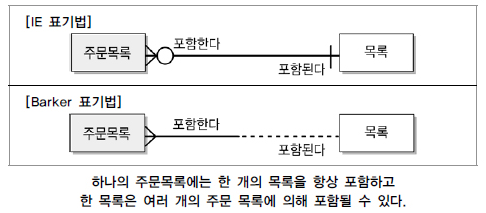 선택참여관계는 모든 참여자가 반드시 관계를 가지는 것이 아닌 관계이다. 예를 들어 목록은 주문이 될 수도 있고, 주문되지 않을 수도 있으므로 목록과 주문목록과의 관계는 선택참여관계가 된다.