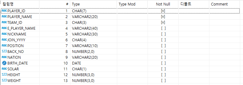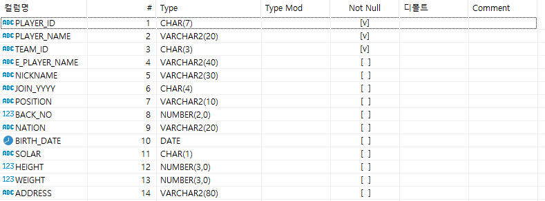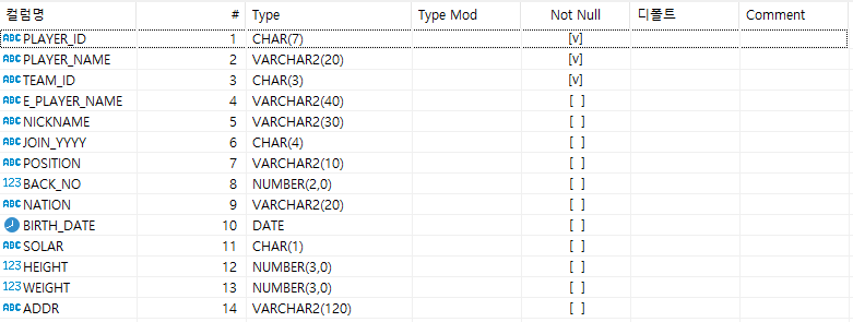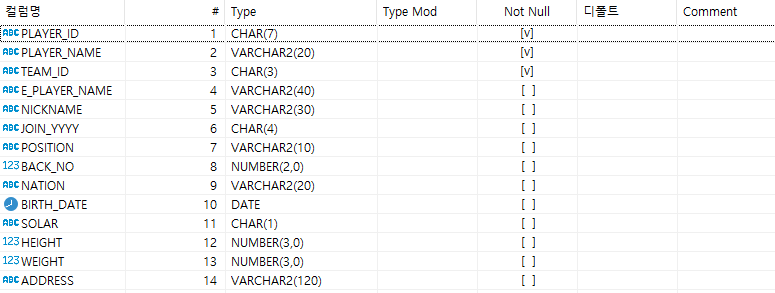 - 컬럼 뒤에 데이터 유형은 꼭 지정되야 한다.