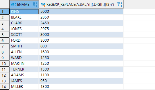 , REGEXP_REPLACE(A.SAL, '([[{:digit:]]{3})')