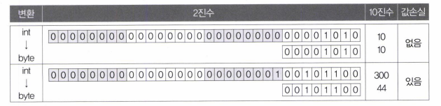- 서로 다른 타입의 변수간 연산은 명시적 캐스팅을 원칙으로 하지만, 값의 범위가 작은 타입에서 큰 타입으로 캐스팅할 때에는 묵시정 캐스팅을 사용할 수 있다.