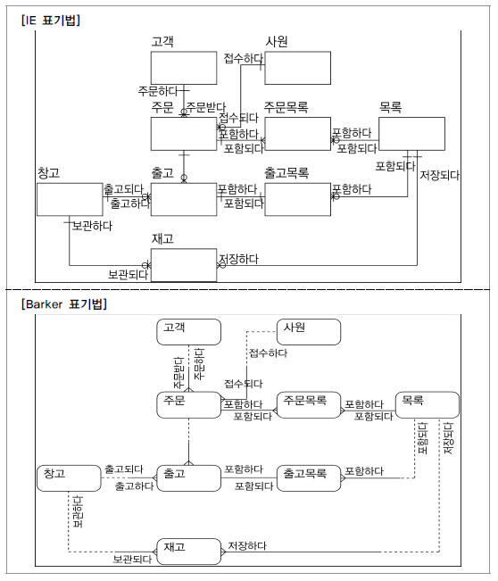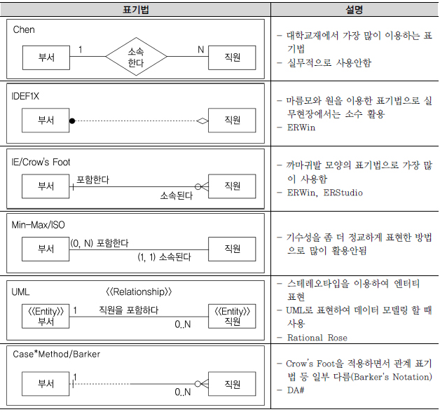 E-R 표기법에는 다양한 종류가 있으며, 내용은 다음과 같다.