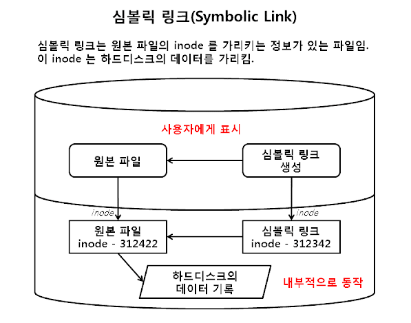 - 디렉토리에 링크 파일을 생성하면 윈도우의 바로가기나 단축아이콘의 기능과 같다.