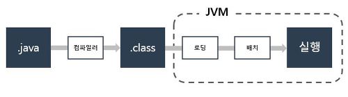자바는 소스프로그램의 확장자가 .java이고, JDK안에 담겨있는 자바 전용 컴파일러인 javac에 의해 .class파일로 컴파일되며, 컴파일된 클래스파일은 자바 가상 기계(JVM)에 의해 실행된다.