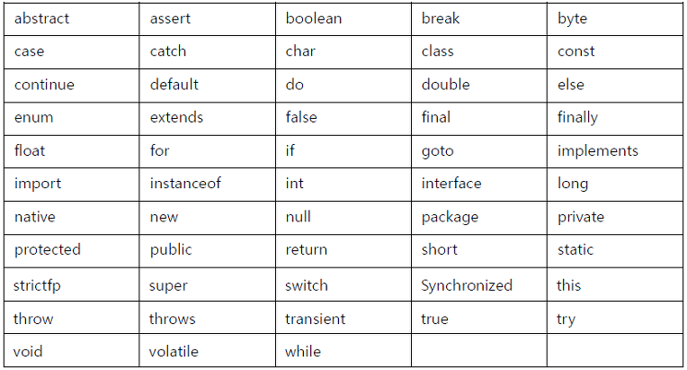 예약어는 ‘키워드’ 또는 ‘리져브드 워드’ 라고 하며, 프로그래밍언어의 구문에 사용되는 단어를 의미한다. 예약어는 변수 뿐만 아니라 클래스, 메서드의 이름으로도 사용할 수 없다.